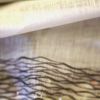 Льняная тюль с небольшим добавлением хлопка. Рисунок из продольных пришитых ниток, повторяется через 71 см.