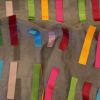 Очень веселая, радостная тюль с нашитыми ленточками разных цветов.