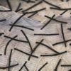 Прозрачная тюль с нашитыми кусочками ткани, создающими эффект разбросанных веточек дерева.