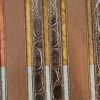 Полоски из экокожи нашиты на сетчатую ткань. Полоски кожи с выделкой и без выделки чередуются между собой. Очень эффектная дизайнерская ткань.