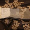 Высококачественная льняная ткань с добавлением шелка на которой вышит рисунок из классических вазонов.