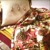 Льняная ткань с печатным рисунком в виде абстрактных цветов.