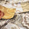 На ткани изображена цветочная композиция, а сложный состав придает этой композиции визуальный объем.
