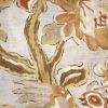 Льняная ткань с добавлением вискозы. На ткани изображен рисунок в виде цветов в пастельных тонах.