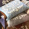 Очень плотная хлопковая ткань с большой вышивкой, повторяющейся по всему полотну в шахматном порядке.
