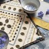 На хлопковой основе сделана вышивка в виде геметрических узоров.
