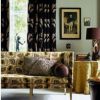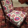Плотная ткань, с крупным, вышитым, этническим рисунком.