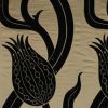 На плотной, гладкой основе ткани, вилюровый рисунок тюльпанов.