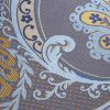 Шелковая ткань Kuskova имеет принт в виде волшебных листьев, которые складываются в образ павлиньего хвоста. Яркий и притягательный рисунок, повторяется каждые 72 сантиметра. В составе ткани натуральный шелк, вискоза и полиэстер. При использовании в качестве обивочной или портьерной ткани данный материал не останется не замеченным и несомненно будет притягивать взгляды.