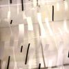 Прозрачная тюль с нанесенным рисунком в виде полосок из белого и черного цветов.