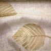 Льняная ткань с вышивкой в виде стебелька с листочком.