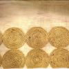 Прозрачная тюль с рядами состоящими из кружочков выполненных из джутовой веревки.