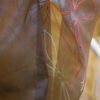 Тюль с вышивкой в виде больших цветков разных цветов.