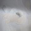 Белая тюль на фоне которой повторяются небольшие рисунки с изображением зайчиков. Рапорт 59*53 см.