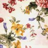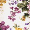 Ткань портьерная с печатным рисунком цветов хризантемы, лилий и фиалок.