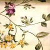Ткань портьерная с печатным рисунком цветов и веточек роз.