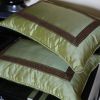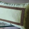 Прямоугольная подушка из шелка оттенка молодой травы декорирована широкой плетеной тесьмой. Чехол съемный на молнии.