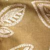 Натуральная ткань с вышитыми белыми нитками листьями деревьев.