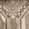 Плотная льняная ткань с вышитым рисунком, сложной геометрической формы.