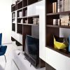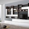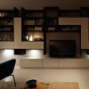 Стенка для гостиных NESTOS от Mercantini представлена в двух вариантах: с задней панелью и без нее. Основание в виде низкой полки и фасады ящиков в глянцевом белом лаке. Каркас подвесного элемента выполнен из древесины под черный дуб. В центре конструкции предусмотрено место для телевизора. Разнообразие открытых и закрытых делает эту композицию невероятно вместительной.