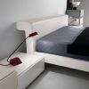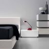 Набор для спальни из коллекции CORA от Mercantini. В набор входит кровать LINEA с мягким изголовьем. Каркас и изголовье обиты мягкой искусственной кожей светлого цвета из каталога фабрики. Прикроватные тумбы необычного дизайна в глянцевом лаке разных оттенков. Белый комод на четыре отделения также отделан лаком.