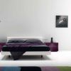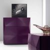 Изящный комплект для спальни DIAMANTE с кроватью LINEA. Каркас кровати обит тканью, изголовье отделано искусственной кожей. За изогнутой спинкой кровати расположена полка из прозрачного стекла. Тумбы и комод в форме, напоминающей бриллиант, изготовлены из облицованного ореха и покрыты лаком яркого цвета.