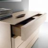 Композиция для спальной комнаты из коллекции VERA. Кровать LUPUS полностью отделана тканью темно-шоколадного оттенка из ассортимента производителя. Комод и тумбы изготовлены из полированной древесины в цвете "светлый клен". Фасады выдвижных ящиков выполнены из утолщенного профиля.