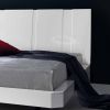 Оригинальный комплект из коллекции DALIA. Двуспальная кровать SAMO выполнена из древесины, покрытой белым лаком. Углы каркаса срезаны. Дизайн изголовья кровати идеально гармонирует с дизайном фасада комода и тумб. Широкий комод с выдвижными ящиками, расположенными в два ряда, и прикроватные тумбочки лакированы в цвет кровати.