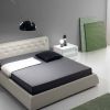 Изящный набор для спальни в современном стиле из коллекции FRIDA. Кровать LUPUS на высоком каркасе обита тканью и покрыта мягкой искусственной кожей из каталога производителя. Фасады тумб и комода покрыты лаком, дополнены вставками из расписного стекла и вертикальными ручками из металла.