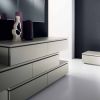 Ультрасовременный набор для спальни от Mercantini. В композиции представлена кровать ELOS в ткани нежно-сиреневого оттенка из каталога фабрики. Оригинального дизайна комод состоит из модулей. Комод и прикроватные тумбы отделаны светло-серым лаком. Дополняет композицию прямоугольное зеркало.