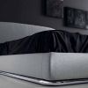 В этом наборе представлена обитая тканью кровать CLAVIUS на хромированном основании. Прикроватные тумбочки выполнены из стекла со встроенным внутренним освещением. Черный глянцевый комод на высоких хромированных ножках покрыт лаком. Фасады выдвижных ящиков дополнены горизонтальными металлическими ручками.