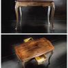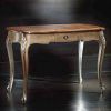 Стол на изящных выгнутых ножках коллекции MUSEUM выполнен в классическом стиле из разных пород дерева: столешница из ореха, а основание из дуба. Модель имеет фигурную прямоугольную форму столешницы, под которой находятся два выдвижных ящичка. Кроме того, основание стола декорировано резными элементами и фурнитурой.