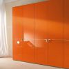 Яркий платяной шкаф с шестью распашными створками от итальянского производителя Mercantini. Этот шкаф полностью покрыт глянцевым лаком оранжевого цвета. По центру модели расположен узкий профиль с оригинальными L-образными ручками из хромированного металла. По запросу клиента, цвет отделки может быть изменен.
