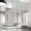 Платяной шкаф от итальянского производителя Mercantini с восемью распашными створками. Узкие зеркальные двери этой модели сверху и снизу декорированы горизонтальными матовыми полосами белого цвета. Четыре вертикальные ручки из хромированного металла идеально дополняют зеркальную отделку шкафа.