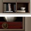 Этот современный комплект для гостиных из современной коллекции Niki от итальянской фабрики Bimax включает напольный и подвесной элементы. Нижняя полка, которая также может служить местом под телевизор, покрыта матовым лаком. Подвесной элемент включает открытые книжные полки из древесины и закрытые ящики с лакированным фасадом.