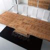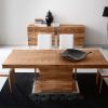 Мебельный гарнитур для столовой комнаты изготовлен из натурального ореха. В композицию входят прямоугольный раздвижной стол, мягкие стулья и 4-дверный сервант. Столешница стола декорирована геометрическим узором различных оттенков дерева и поддерживается массивной основой с трехмерными гранями и стальной отделкой по низу. Древесные каркасы стульев оббиты белой кожей. Сервант визуально разделен стальной вставкой на две одинаковые части, каждая из которых имеет две трехмерные дверцы со внутренними полками.