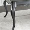 Столовый мебельный гарнитур коллекции Modern Times включает в себя прямоугольный стол на изогнутых ножках и стулья в двух вариантах. Стол и каркасы стульев изготовлены из массива бука. Окраска представленного стола выполнена в сером мышином цвете, хотя компания предлагает множество других вариантов отделки. Наличие резных элементов придает столу неповторимый шарм. Стулья имеют текстильную обивку из широкого ассортимента компании с возможностью простежки кнопками "капитонне".