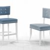 Барный табурет и традиционный стул для кухни коллекции Cinquanta изготовлены из массива бука с последующей обработкой белым цветом. Обивка спинки и сидения стульев в голубых тонах, что в сочетании с белыми ножками придает им легкость и невесомость. Спинки изделий имеют декор в виде четырех белых пуговиц. Варианты отделки и обивки стульев разнообразны и имеют широкий выбор.