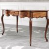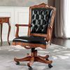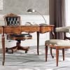 Функциональность представленной композиции соединяется с её изысканностью. Классические элементы изделий придают красоту рабочему месту. В композицию входят: вращающееся кресло на колесиках, письменный стол и стационарное кресло. Деревянный части мебели изготовлены из массива бука, покрытого лаком. Обивка кресел кожаная, кроме того спинка офисного кресла декорирована кнопками "капитонне". Вращающееся кресло регулируется по высоте. Письменный стол оборудован тремя выдвижными ящиками.