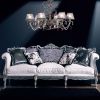 Этот восхитительный набор для гостиной состоит из дивана двух размеров, центрального столика, кресла и небольшого туалетного столика. Вся мебель из этого комплекта отделана под серебро. Столешница столиков выполнена из прочного расписного стекла. Кресло с плетеной спинкой обито тканью благородного оттенка из ассортимента компании.