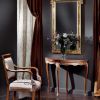 Шикарный комплект в классическом стиле от Sanvito Angelo из консоли, кресел, прямоугольного зеркала и центрального круглого стола. Каркас мебели изготовлен из массива дерева. Его натуральный оттенков прекрасно сочетается с позолотой и патиной белого цвета. Резные элементы придают комплекту благородную роскошь.