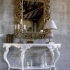 Белая консоль на четырех ножках с дополнительной полкой