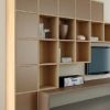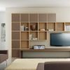 Вместительная стенка для гостиной комнаты от итальянской фабрики Moretti Compact. Эта современная модель изготовлена из древесины вяза высшего качества. Светлое дерево, в отделке, идеально сочетается с лаком шоколадного цвета. Модель состоит из множества квадратных полок, часть из которых закрыты дверцами. Нижний модуль в виде высокой скамьи может служить местом под телевизор и поставкой под стильные аксессуары.