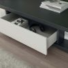 Эта модель модульной стенки от итальянской фабрики Moretti Compact создана для гостиной с современным интерьером. Стенка состоит из двух элементов: напольного и подвесного. Напольный модуль на низких ножках состоит из разных полок и может служить также подставкой под телевизор. Верхний модуль также состоит из открытых и закрытых элементов. В отделке этой модели используется сочетание белого и серого лака графитового оттенка.