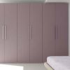 Восхитительный набор для спальни в современном стиле от итальянской фабрики Moretti Compact. В набор входят: двуспальная кровать, вместительный комод с выдвижными ящиками, прикроватные тумбы и шкаф с шестью распашными створками. Светлая кровать на каркасе из древесины установлена на высоких металлических ножках. Фасады выдвижных ящиков на прикроватных тумбочках и подвесном комоде дополнены стильными ручками их хромированного металла. Вместительный шкаф с узкими распашными дверцами покрыт лаком ежевичного цвета из ассортимента компании.
