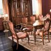 Классический столовый набор от итальянской фабрики BL Mobili. В наборе представлен большой прямоугольный стол из массива дерева. Витрина с распашными створками может быть выполнена из ясеня или ореха и отделана лаком. Резные детали на корпусе моделей покрыты позолотой. Дополняет комплект мягкое кресло с подлокотниками.