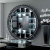 Круглая барная рама коллекции BAROQUE выполнена в чёрно-белом цвете и обрамлена сложным резным узором. Модель имеет множество ячеек, подсветку под горизонтальными открытыми полками и бар за центральными стеклянными раздвижными дверцами. В тон секционной рамы подобраны прямоугольный кофейный столик и большая ваза. Край столешницы и нижний край столика декорированы резными элементами с сложным узором на углах. Под чёрными секциями столика спрятаны полки для CD/DVD-дисков, а центральная белая часть оборудована мини-баром. Варианты отделки всех моделей разнообразный, что позволит подобрать ту, цветовую гамму, которая наиболее гармонично впишется в ваш интерьер.
