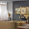 Композиция для гостиной коллекции ART DECO с огромным круглым зеркалом и стенкой для 58-дюймового плазменного телевизора отличается оригинальностью отделки, стильными формами и неповторимой красотой. Стенка имеет полки для CD/DVD/Home Cinema- аппаратуры, нишу для телевизора, которая в нерабочем состоянии последнего может закрываться раздвижными художественно оформленными панно. Боковые полки разделены на секции, одна из которых имеет подсветку. Для хранения скопившихся CD/DVD дисков можно использовать столик, в котором имеются соответственные скрытые под столешницей полки. Для удобного отдыха и просмотра ТV-передач композиция дополнена кожаными креслами и диваном, спинки которых расположены на одном уровне с подлокотниками, имеют мягкие съемные сидения Компания предлагает и другие цветовые вариации и способы декора представленной мебели.