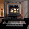Композиция для гостиной с подсветкой состоит из стенки под плазменный телевизор и выполненного в том же стиле прямоугольного столика и дополнена подставкой под диски "Empire", которая излучает дополнительный свет. Стенка имеет открытые полочки для CD/DVD/Home Cinema-аппаратуры, между которыми способна вместить 50-дюймовый плазменный экран. Задняя панель модели имеет подсветку. Если у вас накопилось огромное количество CD/DVD-дисков, то эту проблему может решить столик, под боковыми элементами столешницы которого находятся скрытые специальные полочки. Также стоит отметить, что центральная часть столика таит в себе мини-бар. Возвращаясь к хранению дисков, отметим, что специальная подставка под диски "Empire" может вместить 122 CD-диска.