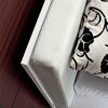 Спальня для деловой и активной женщины выполнена из древесины в белой лакировке. Прямые линии, лаконичный декор и надёжность мебели - характерные черты представленной композиции. Несущая конструкция просторной кровати выполнена из окрашенного металла, а её изголовье – из искусственной белой кожи. Маленький круглый столик с латунным стержнем-основой и белой столешницей выполняет роль прикроватной тумбочки. Для хранения одежды и постельного белья предусмотрены два широких комода, каждый из которых имеет четыре выдвижных ящика с латунными ручками. Навесные книжные ящики и настенные открытые полки гармонично вписываются и завершают данную композицию, мебель для которой вы можете приобрести как в белой лакировке, так и с использованием фанеровки красным деревом.
